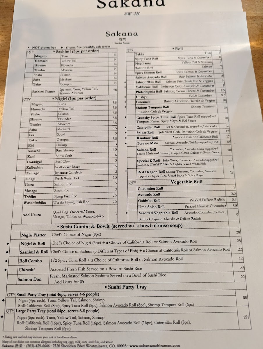 Welcome to Sakana, a delightful Japanese restaurant nestled in Westminster, CO. Here, the menu is a celebration of authentic flavors, featuring a tantalizing array of options that cater to every palate.